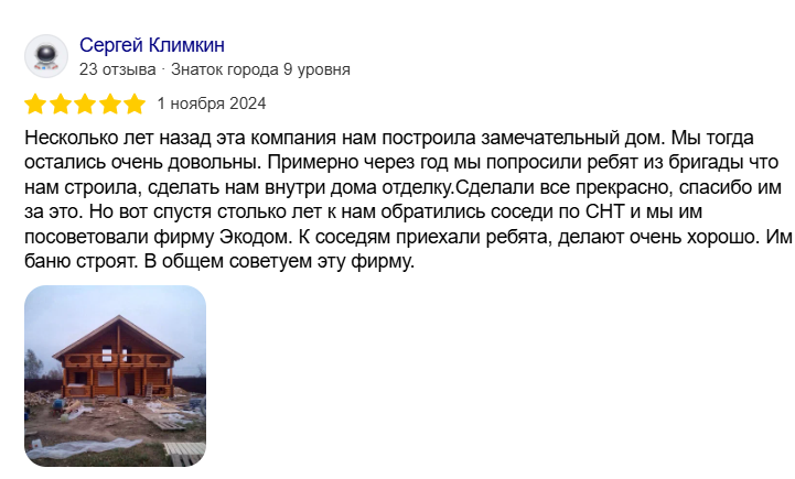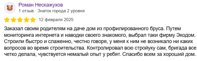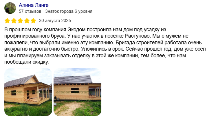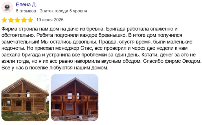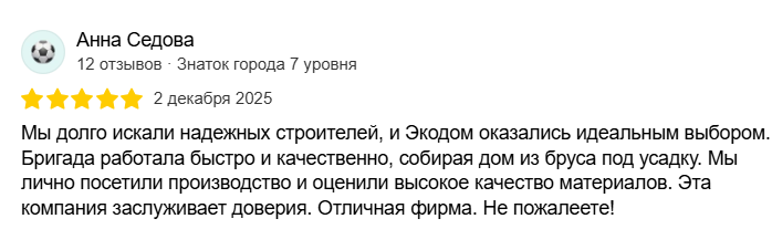 «ЭкоДом» — это компания полного цикла, специализирующаяся на строительстве домов из бруса под усадку и отделке домов. Мы создаём прочные и долговечные дома, которые служат поколениям.